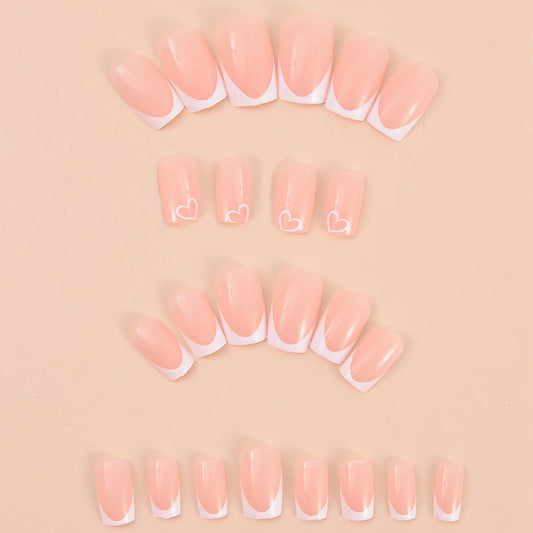 24 Pcs white Long Square French Press On Nails Love Design, Nails tool & 1pc Nail File & 1Nail Glue Sticker Kit Nails For Girl