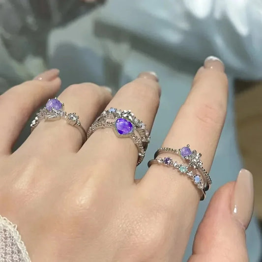 2024 Fashion Jewelry Crystal Rings Heart Adjustable Ring Irregular Geometry Punk Vintage Rings Set for Women Girls Hot Sales