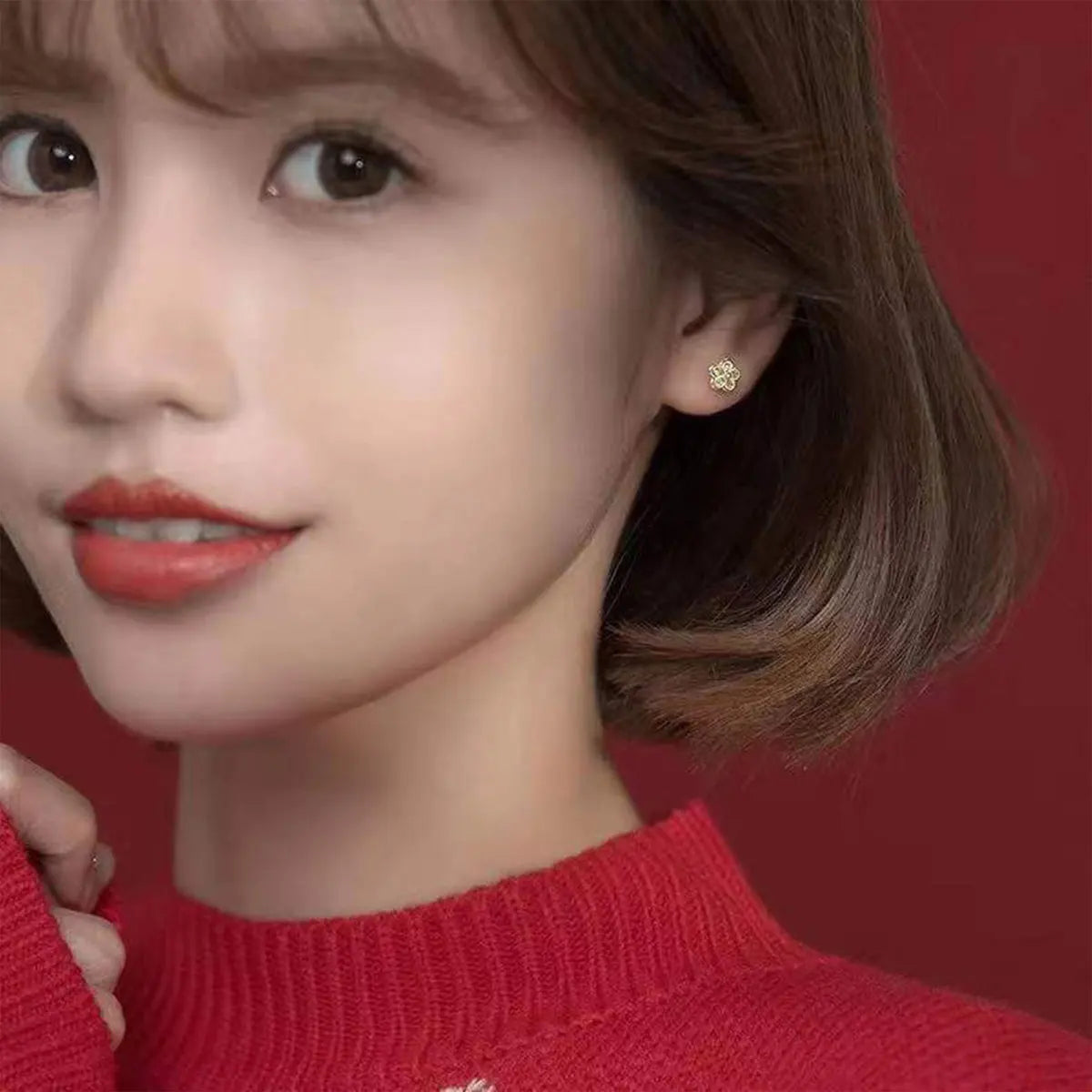 1 pair of everyday everything sweet earrings, double shiny zircon flower earrings for women and girls