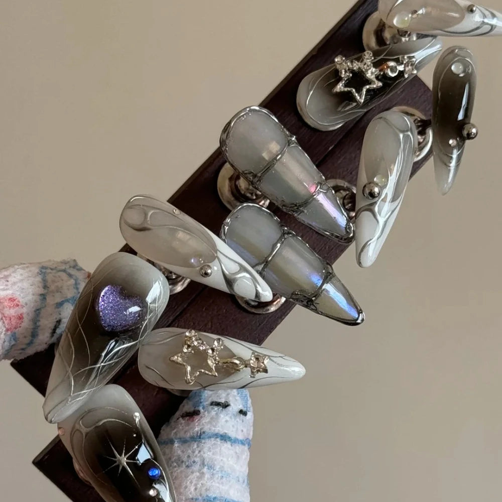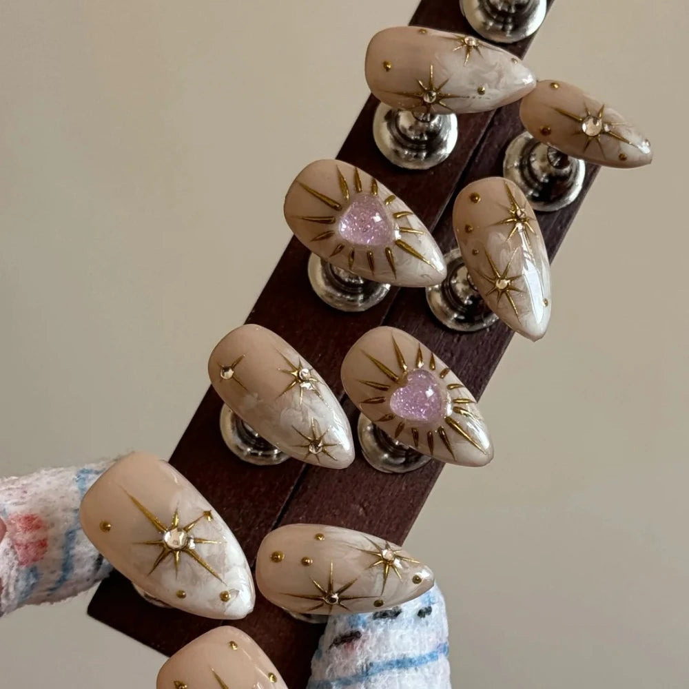 2025 Summer Trendy Handmade Nails Almond Press On Nails 10Pcs 3D Flower Design False Nails with Adhesive Glue & Nail File Set