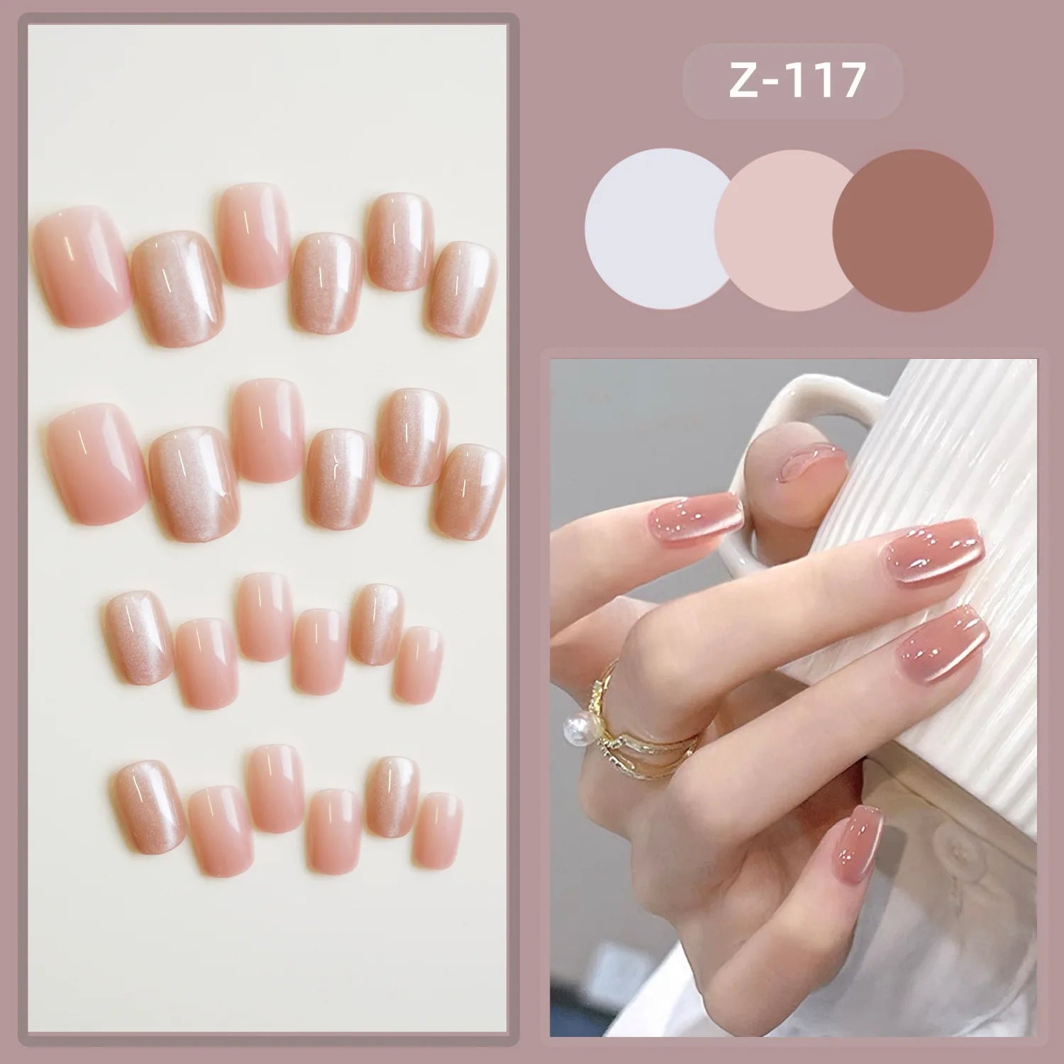 24PCS/1BOX Cat's Eye Fake Nails Phototherapy Gand-worn Armor Fake Nails